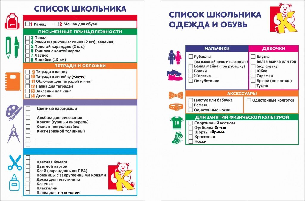 Все школьные принадлежности, обувь, мешки и т. п. должны быть подписаны. Подписывайте вещи так, чтобы это было ярко, видно, не отклеилось и не отпало, когда начнем пользоваться.